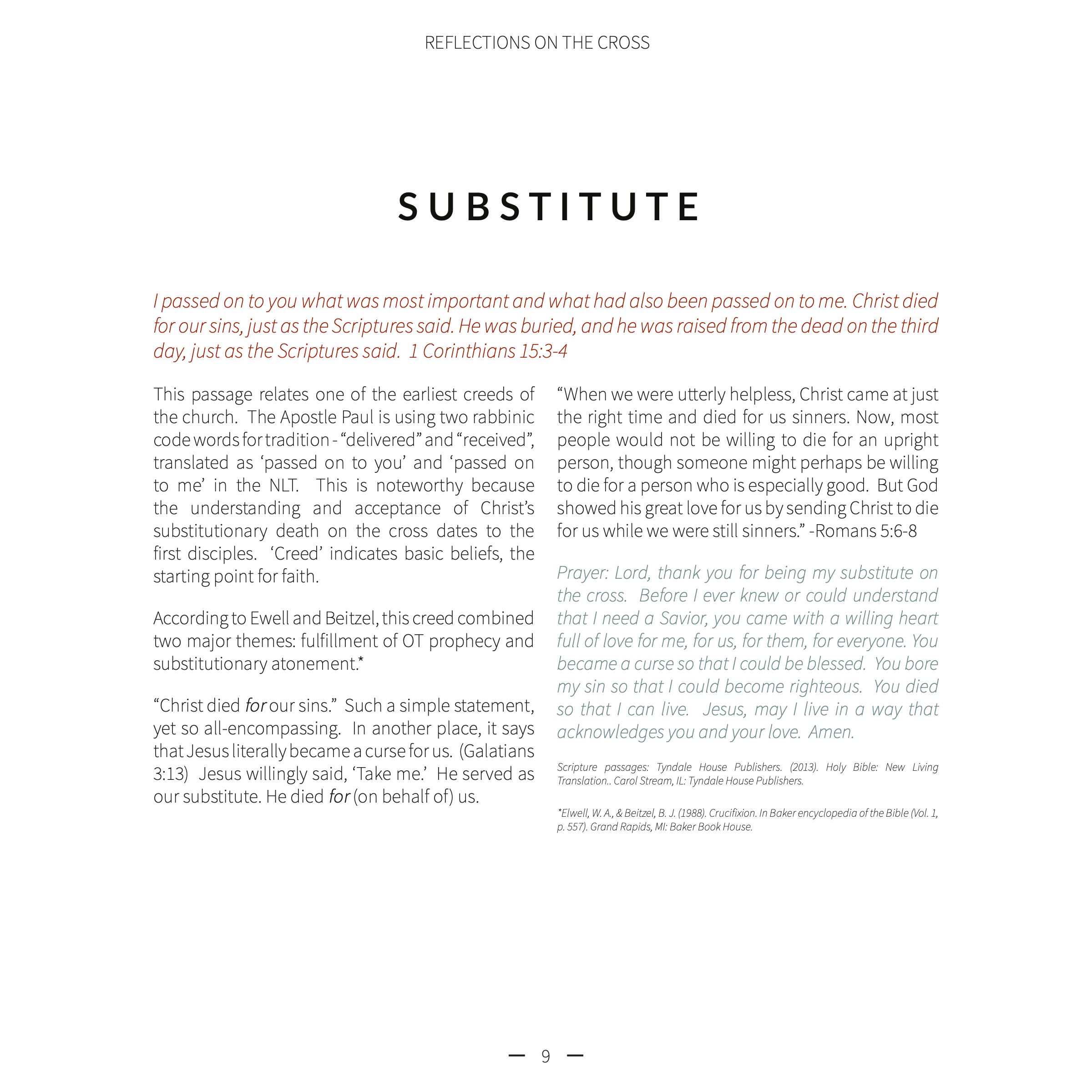 This passage relates one of the earliest creeds of the church. The Apostle Paul is using two rabbinic code words for tradition - “delivered” and “received”, translated as ‘passed on to you’ and ‘passed on to me’ in the NLT. This is noteworthy because the understanding and acceptance of Christ’s substitutionary death on the cross dates to the first disciples. ‘Creed’ indicates basic beliefs, the starting point for faith.